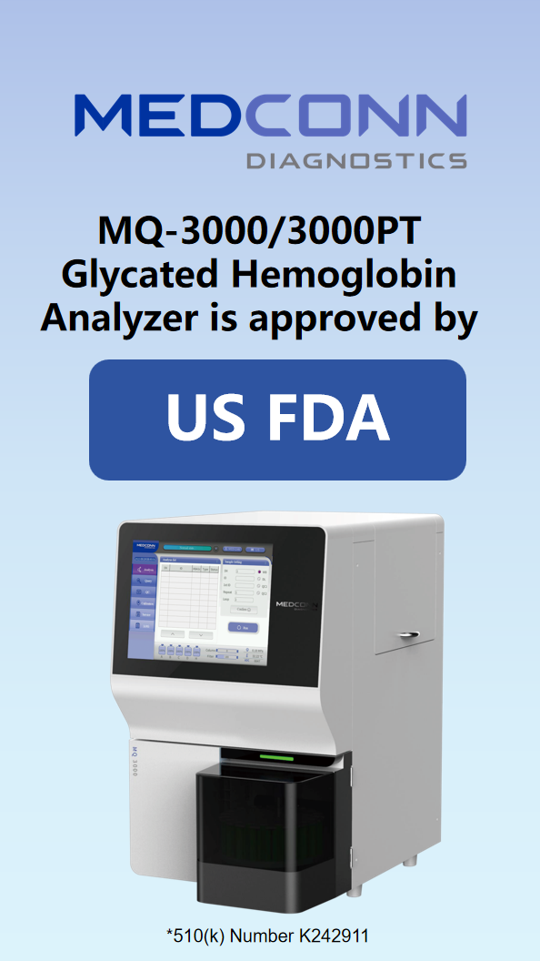 Shanghai, China – 24/06/2025 – Medconn Diagnostics, a leading innovator in the field of in vitro diagnostics (IVD), is proud to announce that its flagship product, the MQ-3000/MQ3000PT Glycated Hemoglobin Analyzer, has been officially cleared by the U.S. Food and Drug Administration (FDA 510(k)). This marks a significant milestone as Medconn becomes the first Chinese manufacturer to receive FDA clearance for an HPLC-based HbA1c analyzer—a landmark achievement in China's diagnostic industry.